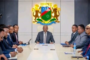 The President of the South West State, His Excellency Abdiaziz Hassan Mohamed Laftagareen, chaired the Meeting of Directors General of the Ministries of the South West State, which was held at the Presidential Palace in Baidoa.